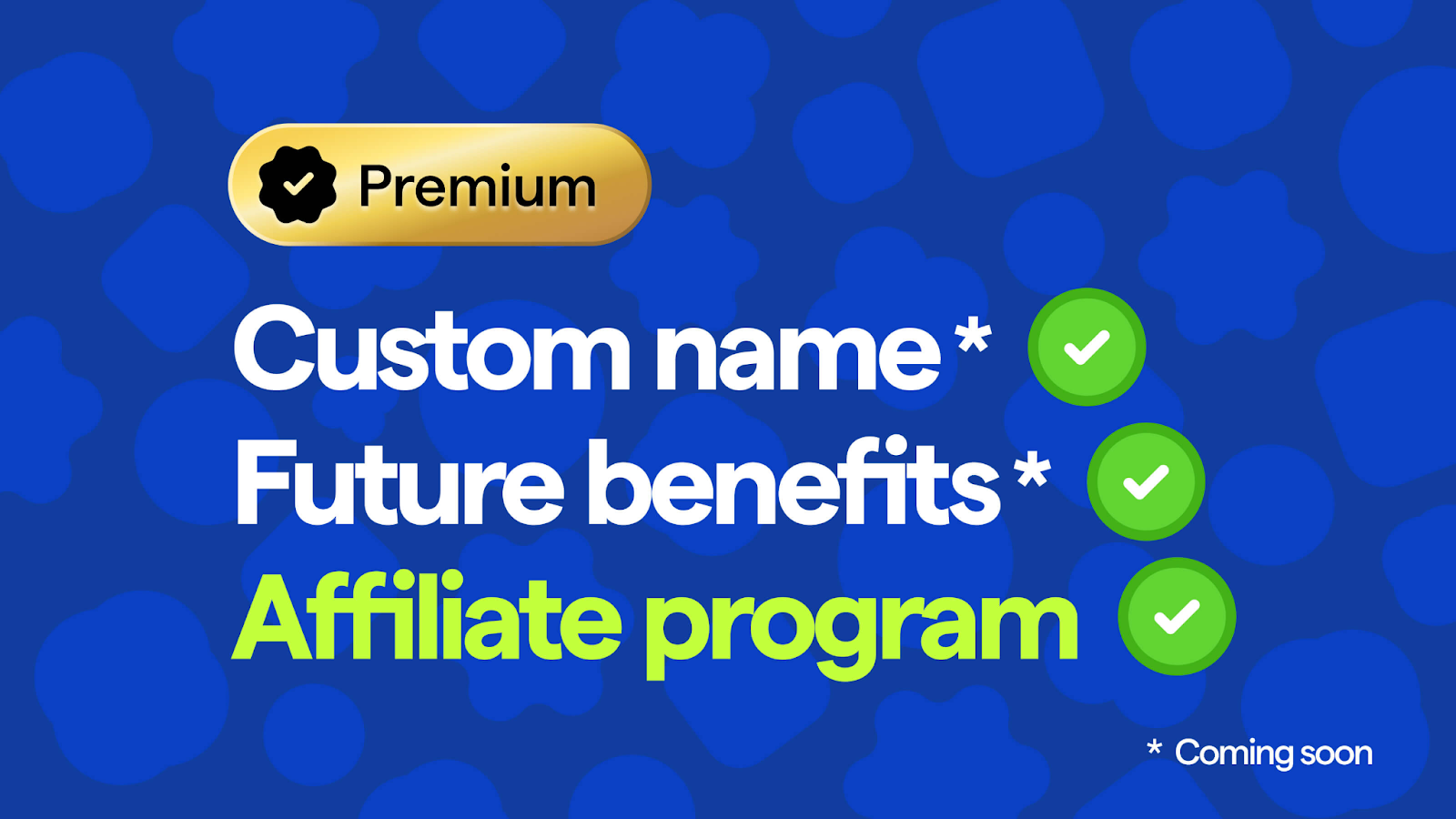 프리미엄 벳지 - 커스텀 이름 (출시 예정), 추가 혜택 (출시 예정), 어필리에이트 프로그램 ✅
