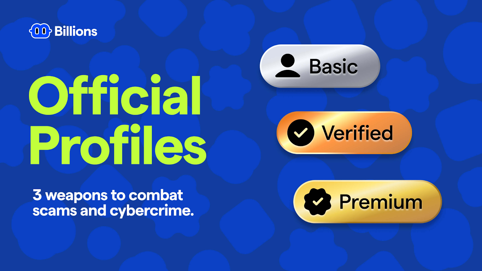 Billions 공식 프로필 - 사이버 범죄와 부정 행위를 막기 위한 3단계 솔루션 : 기본, 인증, 프리미엄
